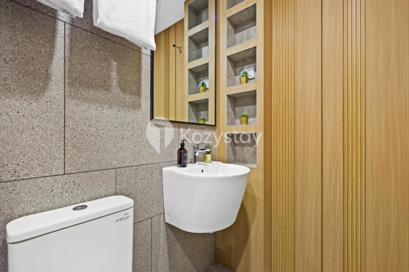 One-Bedroom Apartment. The air-conditioned apartment has 1 bedroom and 1 bathroom with a shower and a bidet. In the kitchen, guests will find a stovetop, a refrigerator, kitchenware and a microwave. Boasting a balcony with city views, this apartment also offers a seating area and a flat-screen TV with streaming services. The unit has 1 bed.