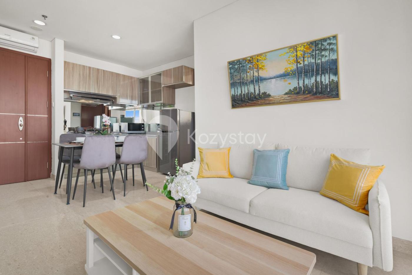 Three-Bedroom Apartment. This spacious apartment consists of 1 living room, 3 separate bedrooms and 2 bathrooms with a shower and free toiletries. The kitchen is equipped with a stovetop, a refrigerator and a microwave. The air-conditioned apartment provides a flat-screen TV with streaming services, a washing machine, a seating area, a dining area as well as city views. The unit offers 3 beds.