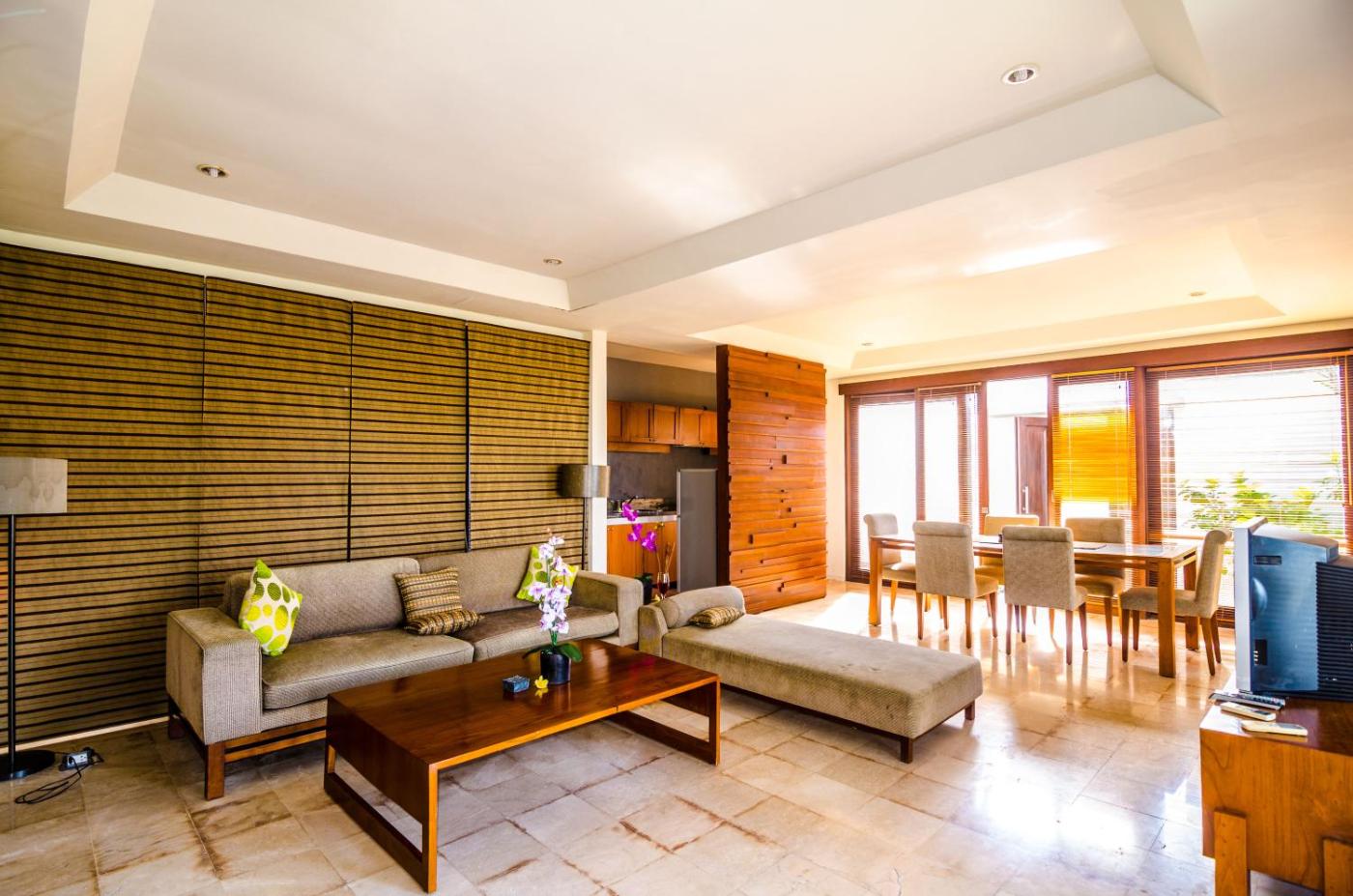 Four-Bedroom Villa with Private Pool. Featuring modern Balinese decor, interconnected 2-bedroom villas are fitted with full-length glass doors, full kitchen facilities and a beautiful outdoor pool. Includes a flat-screen TV and DVD player. Master bathroom has a bathtub. ;