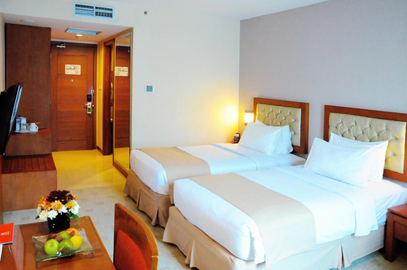 Deluxe Twin Room. Air conditioned and well equipped with a 32-inch flat-screen satellite TV, a minibar and a safety deposit box. The en suite bathroom comes with free toiletries. ;