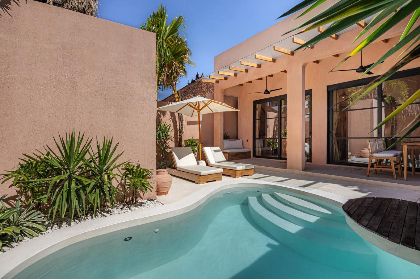 Two-Bedroom Villa with Private Pool. This villa offers a private pool. This air-conditioned villa is comprised of 1 living room, 2 separate bedrooms and 2 bathrooms with a bath. The villas kitchen is available for cooking and storing food. Guests can enjoy a terrace and a patio. The unit offers 2 beds.