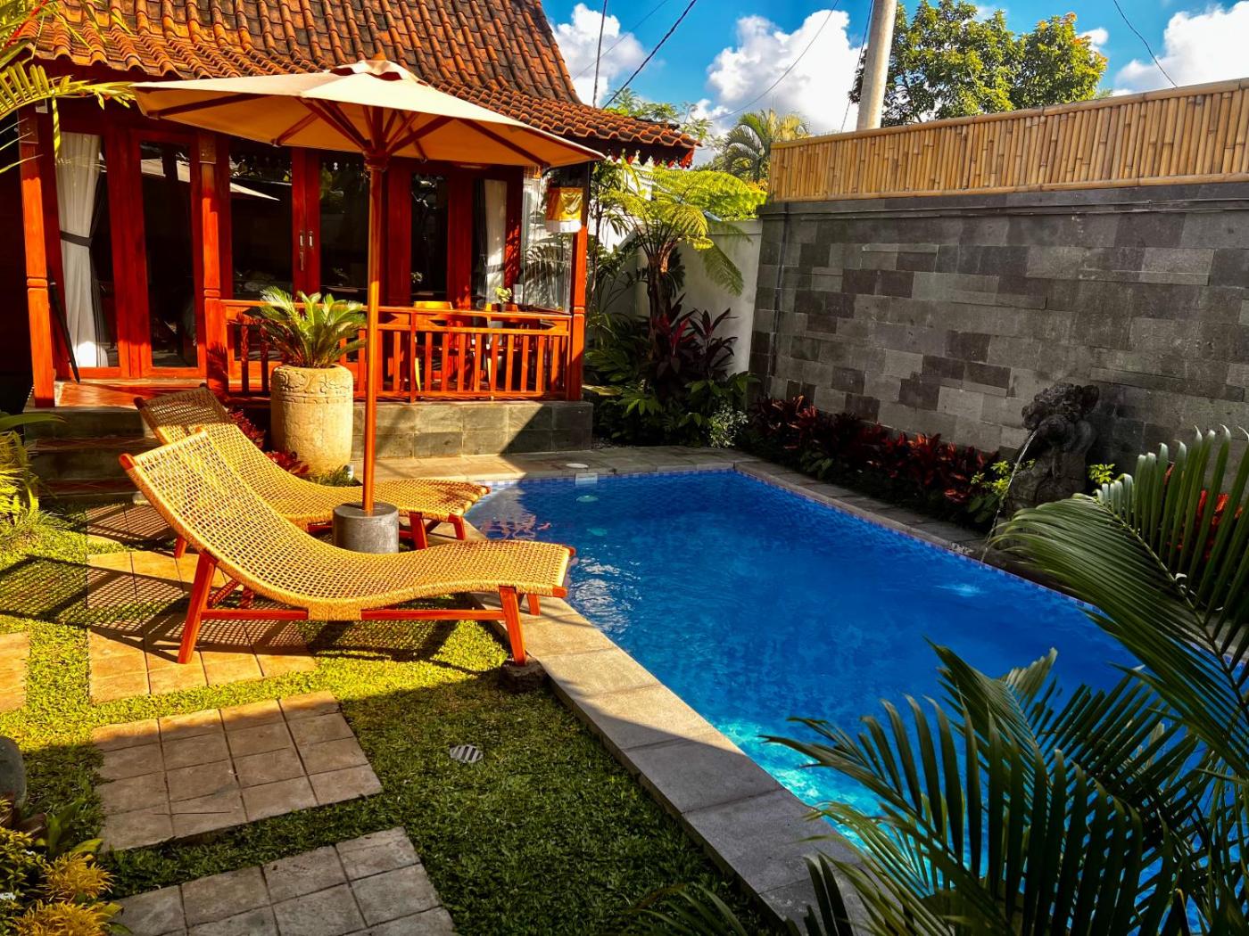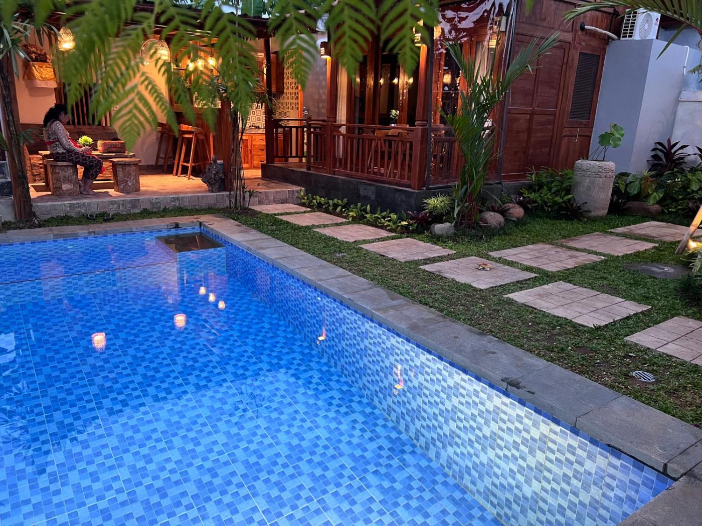 Guests can enjoy the outdoor swimming pool and garden at Bale Bali Wooden house.