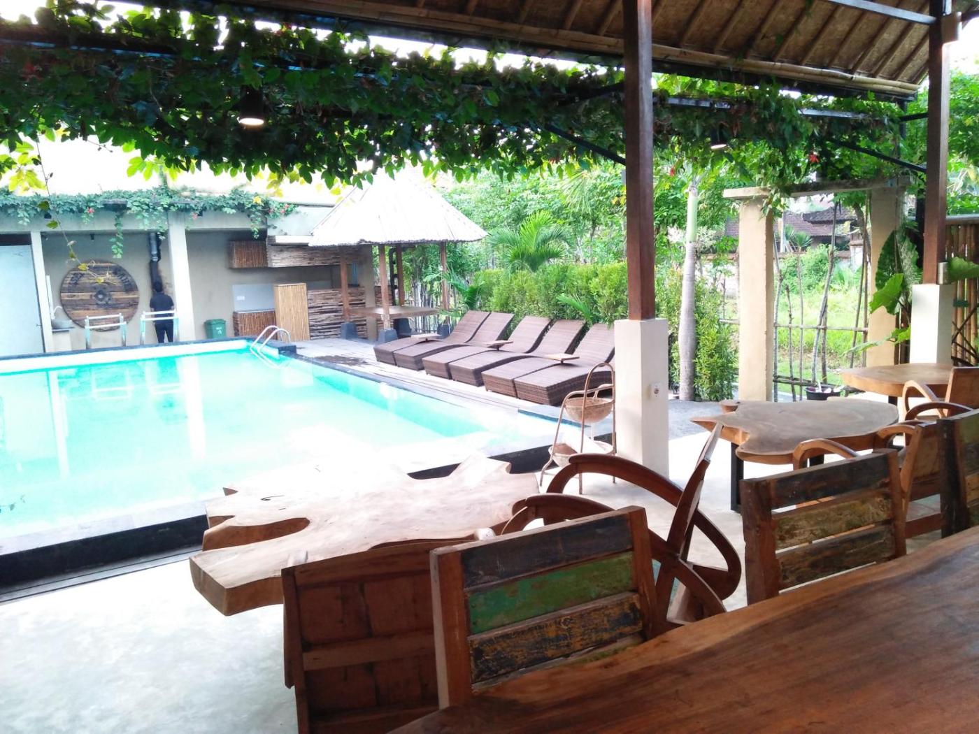 Guests can enjoy the outdoor swimming pool at the villa.