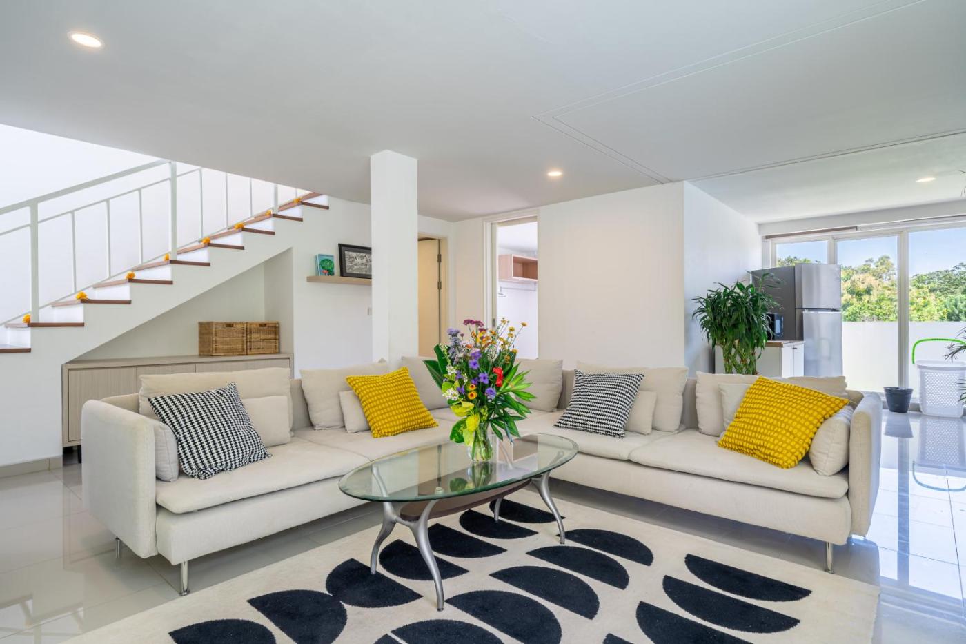 Three-Bedroom Villa. In the well-equipped kitchen, guests will find a stovetop, a refrigerator, a microwave and an electric kettle. The air-conditioned villa offers a flat-screen TV, a washing machine, a private entrance, a seating area as well as garden views. The unit has 3 beds.